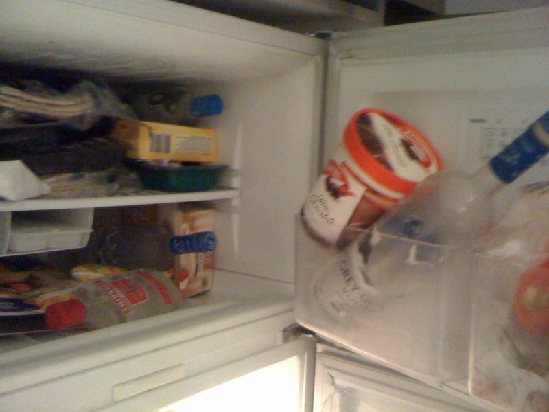 For me, it’s my freezer. As of today, it features four bottles of Vodka and one tub of Dark Chocolate Ice Cream. The best part is that I literally have a bottle of Smirnoff in there that is my ‘Emergency Vodka’ – just in case I ever run out. And, really, what more can a single guy want out of life?