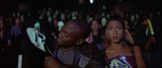 Scream was always at it’s best when it used it’s format to commentate on the horror movie genre. And what better way to do that than create a film within a film. What started as an off-hand joke in the first movie (when they joke around about their lives being a movie, Sidney remarks “With my luck they’d cast Tori Spelling to play me”) quickly turned into a hilariously game Tori Spelling cameo in the second film (playing opposite a pre-fame Luke Wilson as Skeet Ulrich) and then went full blown in the third, which was set primarily on the set of the fictional second sequel. The real characters spent the movie running around with the actors playing them, the killer starts offing people in the order they die in the script and Sidney barely survives a thrilling encounter with Ghostface chasing her through the set of her old home, complete with fake walls and exterior scaffolding.