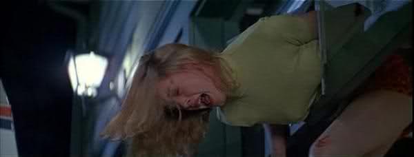 The Scream movies aren’t short on memorable set pieces, but few horrors movies can boast anything as horrific or as thrillingly inventive as Rose McGowan getting her head crush by a Garage Door Opener. In three sweet minutes, McGowan’s Tatum hilariously sends up the whole helpless victim persona (“Oh, don’t kill me Mister Ghostface – I want to be in the sequel!”) before sadly succumbing to it (wandering off on her own, underage drinking and, let’s face it, she would have made it through that doggy door if she didn’t have such giant cans..) And, thanks to McGowan’s bravura performance, the audience was always on her side, even when they were baying for blood.