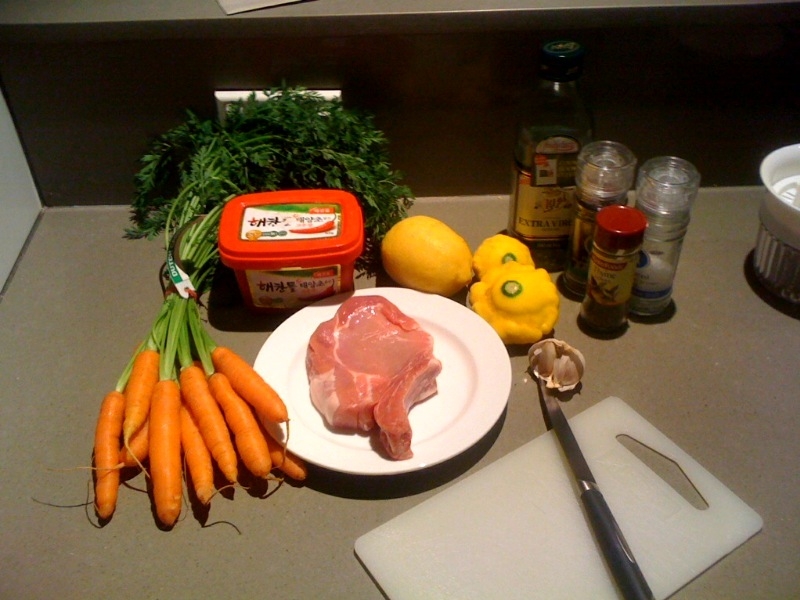 Single White Meals : Chilli, Lemon & Thyme Pork Cutlets with Dutch Carrots and Baby Yellow Squash