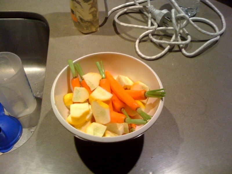 So, when last night a mate told me he was getting Pizza for dinner for the seventeenth night in a row, I set myself a little cellular mealtime challenge – I decided the liveblog via cell phone how long it would take to make a nutritious and low-fat meal for one that was not just tasty but sufficiently worth the effort.